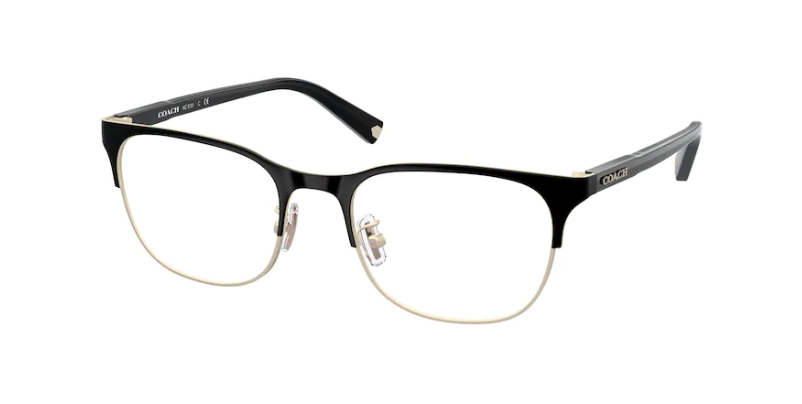 Contemporary and understated, our Coach Florin frame comes in a structured and strong-lined silhouette. This pair features retro-cool semi-rimless frames lined with gold and black. A distinctly versatile design, accented by Coach lettering along the temples.