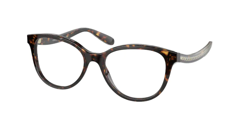 The iconic sculpted C of Coach becomes a standout element on these fashionable go-to frames. Feminine round acetate front in standard and exciting colors.